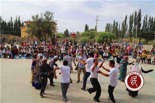 工作组全力组建的“美丽古丽文艺队”上场了,她们带来了开场舞《欢乐的桑巴》及闭幕压轴舞《健美操》,《健美操》前两天刚在乡里的舞蹈比赛中获得一等奖,姑娘和小伙子们的精彩表演赢得现场观众阵阵热烈的掌声。村民们还带来了独唱、乐器演奏、舞蹈等节目,台下的观众们不顾酷暑高温,看得聚精会神,掌声、欢呼声不断,现场气氛热烈。当欢快的麦西来甫响起时,演员、群众纷纷上场,工作组也被感染,上场与大家一起跳起了麦西来甫。