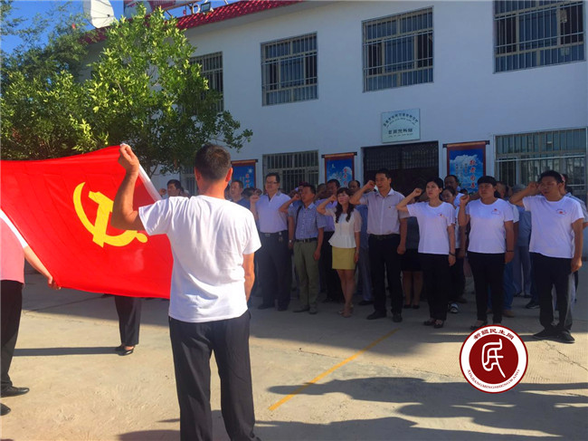 工作组队员以及全村45名党员整齐划一的站在鲜艳的党旗面前,佩戴党徽、重温誓词、庄严宣誓、亮明身份。整个过程气氛昂然向上又兼具厚重的仪式感,让广大党员回忆入党时刻,不忘入党初心,牢记责任使命,坚信对党的庄严承诺,永葆共产党员本色。