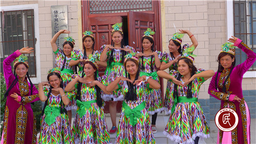 这是自治区党委党史研究室工作组为村文艺队队员们配备演出服一幕,也是阿克苏市各级工作组综合施策,着力推动“去极端化”的一个缩影。