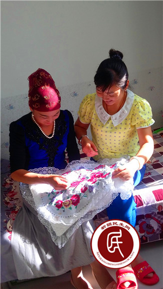 工作组成员对贫困户进行汉语培训、交流刺绣经验