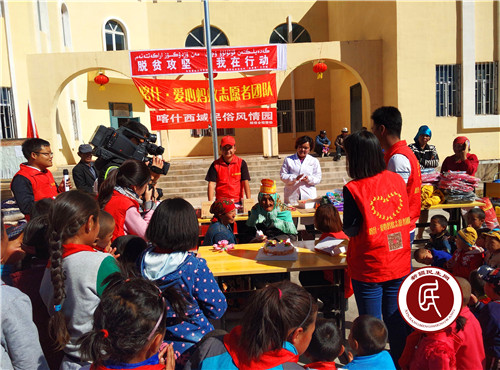 新疆民生网讯 (通讯员 贾正鑫)10月17日,是我国第3个扶贫日。10月16日上午,乌恰县疾控中心住托云乡托云村“访惠聚”工作组携手喀什爱心蚂蚁志愿者团队、喀什西域民俗风情园在托云村开展“脱贫攻坚·我在行动”志愿服务活动。