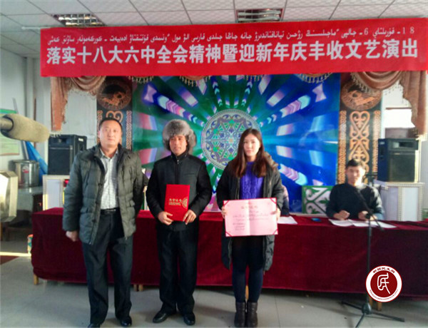 新疆民生网讯 (通讯员 吕凤燕、阿热阿依)为了使农牧民过一个欢乐、和谐的新年,12月29日,呼图壁县住建局驻石梯子乡霍斯托别村工作队联合村“两委”举行了“落实十八届六中全会精神暨迎新年庆丰收”文艺演出,村“两委”班子、驻村工作队员、老党员代表、村民代表、致富能手等100余人参加活动。