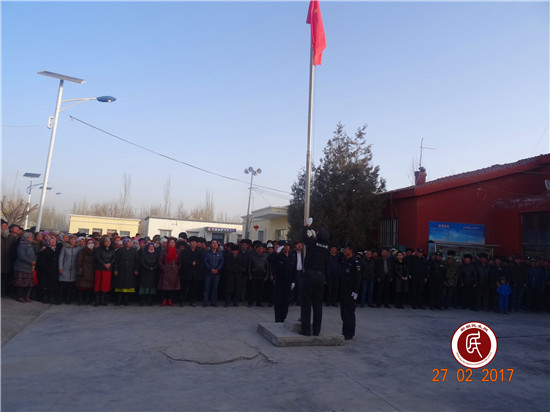 新疆民生网讯(通讯员 杨潮 王志刚)2月27日星期一,是阿图什公路管理局驻村工作队与凯勒敦村村民在驻村期间的最后一次升国旗。今天的天气格外晴朗,早上十点半,村民们准时来到了村委会,工作队员提前来到国旗下,与村民亲切握手、问寒问暖,借着周一升国旗这种独特的方式与村民话别。