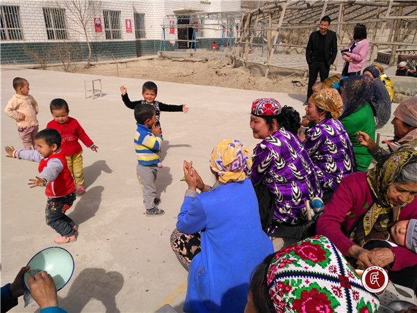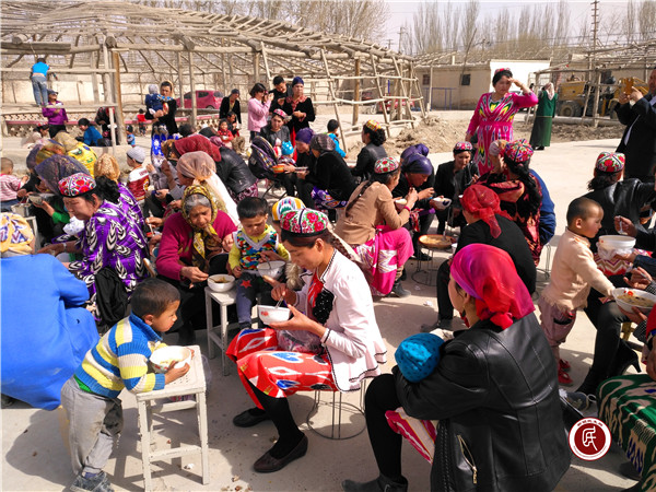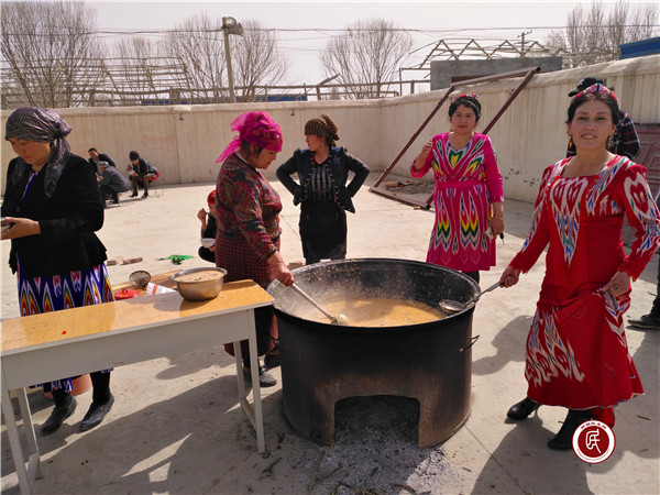 新疆民生网讯 (通讯员 刘胜昔)阳光很暖,呼吸很柔,空气清新,春天正向我们走来。此时,随着悦耳的音乐,阿克苏市托普鲁克乡蚕种场村的村民们在大队部的广场上一边吃着诺鲁孜饭、一边载歌载舞,欢庆一年一度的诺鲁孜节,祈祷新的一年风调雨顺、五谷丰登。轻盈的舞步、靓丽的民族服饰、灿烂的笑脸,无不洋溢着内心的喜悦和对春天的期盼。