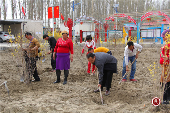新疆民生网讯 (通讯员 张鹏)为进一步优化村级阵地环境,近日,库木买里村抓住春季植树造林的有利时机,积极开展村级阵地绿化、美化、净化活动。阿克苏团地委驻村工作队积极协助村“两委”班子从绿化美化村委会庭院入手,对村容村貌进行改善。