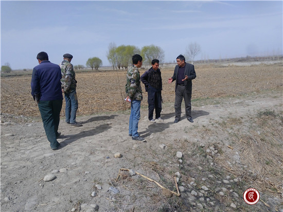 新疆民生网讯 (通讯员 杜进姣)4月4日,拜城县温巴什乡吉格代力克村村民小组第三小组长赛买提·亚森找到工作队办公室,希望工作队能够出面调解第三小组艾合买提·居曼和阿吾提·毛尼亚孜两人的矛盾。第三小组长赛买提·亚森向我们介绍道,因为去年发洪水,阿吾提·毛尼亚孜家的好几亩地被大水冲了,下面的渠道也被冲坏了,无法修复。眼看着要灌水了,想从他们两家地里挑出一条水渠保证顺利灌水工作,艾合买提·居曼和阿吾提·毛尼亚孜两人都不同意从自己地里挑水渠,导致旁边相邻的40亩左右的地无法灌水,严重影响了大家的正常生产工作,小队长多次调解未果,无奈之下来找工作队。