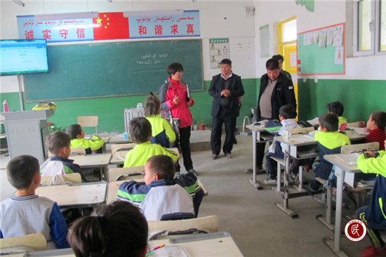 新疆民生网讯 (通讯员 陈永杰 )4月6日早,驻阿克吾斯塘村工作队全体成员来到温宿县古勒阿瓦提乡第一小学提根村小学,开展“三进两联一交友”活动。