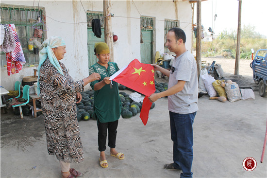工作队队长买买提·斯马依说:“五星红旗是国家的象征,挂国旗是大家的爱国情怀,更希望祖国繁荣富强,人民幸福美满。”