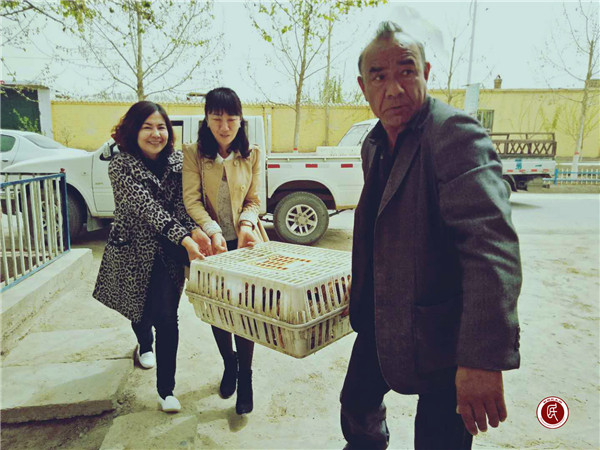 新疆民生网(阿依努尔·提来木)4月14日,温宿县广播电视中心柯柯牙镇戈壁新村工作队和下沉的10名干部针对各自帮扶的贫困户家中的实际情况,自掏腰包1615元购买了95只鸡苗送到了柯柯牙镇萨依巴格村吾甫尔·吐米尔、屯萨罕·普拉提、艾合买提.买买提、麦合木提.米拉吾提4户精准扶贫建档立卡对象手中,助力该4户贫困户2018年脱贫摘帽。