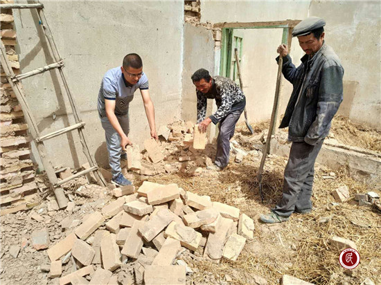 新疆民生网(亚库甫·艾力)“来,我们俩把这些砖搬完,搬砖完了把木头门拆出来。”5月26日,工作队队员们在老党员莫提汗·吐克的院子里拆老房,准备新建富民安居房。