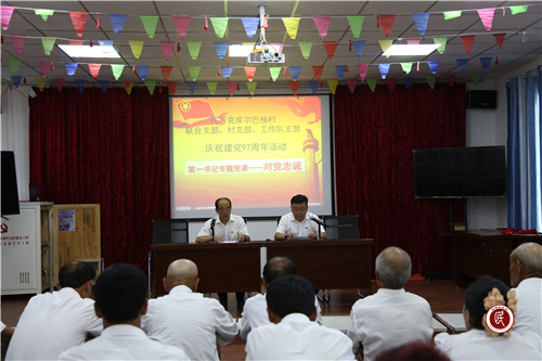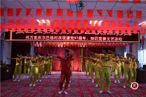 新疆民生网(陈新远)“七·一”建党节前夕,托万克库尔巴格村联合党支部、村党支部、驻村工作队支部共同举办庆祝建党97周年活动。活动在奏唱国歌中拉开序幕,全体党员面向党旗重温入党誓词,牢记党员的义务、责任和使命,随后三名新党员面对党旗郑重宣誓入党,为村党组织增添了新鲜血液。全体党员们铿铿誓言表达了决心跟党走的信念。村第一书记、工作队队长李凤鸣为全体党员、发展对象和入党积极分子讲了《对党忠诚》专题党课,阐明作为一名党员“在党爱党、在党言党、在党忧党、在党为党”的基本要求,在建党97周年这个特殊日子中激发全体党员内心中对党忠诚的情怀。村干部、四老人员、普通党员和入党积极分子代表发声亮剑,表达心声,由衷赞扬了党97年光辉历程。在党员知识竞赛中穿插秧歌舞、现代舞和健美操的表演,展现出强烈的现代文化气息,靓丽的服装、欢快的舞足、优美的舞姿、甜美的笑容所洋溢出的热烈和幸福,表明了对建党97周年的衷心祝愿和对党的无限感激。最后驻村工作队队员、村两委与全体党员和村民一起,用普通话高唱红歌《没有共产党就没有新中国》,抒发了对党的热爱,唱出了“感党恩、听党话、跟党走”的真情实意,将活动推向高潮。