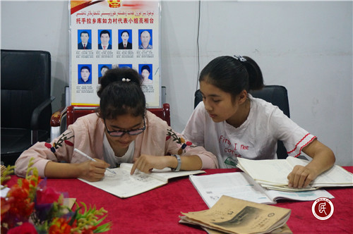 为了加强返乡大学生教育管理,丰富他们的暑期生活,同时弥补工作队双语干部数量不足的问题,库如力村“访惠聚”工作队和村两委、团支部积极调动返乡学生参与到村级事务中,根据其专业特长为他们安排合适的社会实践活动和志愿服务活动,鼓励他们在实践中增长才干,在服务群众中增回馈家乡。