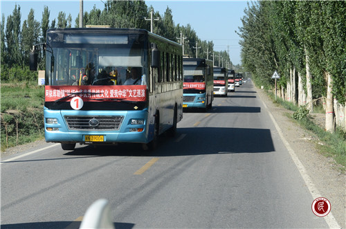 经三个月筹备,24名工作人员和指导老师,321名群众演员,从7月9日到7月26日,在烧烤模式下奔途颠簸1500里,辗转阿克苏市各乡镇(街道、管委会)及部分村(队),为44560名观众带去了14场以“爱我中华·弘扬中华优秀传统文化”为主题的精彩文艺巡演。