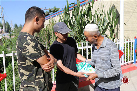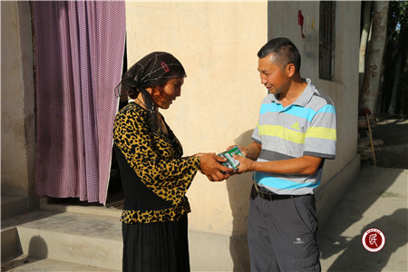 新疆民生网(陈新远 )“真是太感谢工作队了,给我们送来了免费的药品,为我们解决了生产中的大问题,有了你们的帮助,我一定能尽快甩掉贫困户的帽子!”8月10日下午,温宿县托乎拉乡托万克库尔巴格村的贫困户艾合买提·托乎提捧着水稻疫病防治药品,激动地不住向自治区地矿局驻村工作队队长李凤鸣道谢。