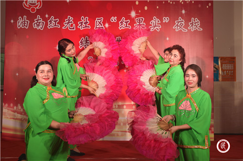 新疆民生网(武海丽 张越)近日,油南红光社区“红果实”普通话夜校的学员顺利结业,他们用歌舞、朗诵、演小品的方式展示学习成果。