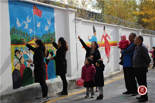 连续几天,工作队带着社区“两委”班子反复讨论确定解决方案,召开大党委联席会议,协调物业公司对300米危墙进行拆除重建,组织志愿队历时半个多月,在墙上绘制了55幅“民族团结一家亲”主题涂鸦画。