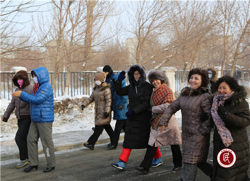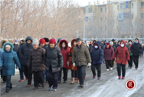 4点45分,在社区副主任帕尔哈提·阿不拉提的带领下,大家排队出发。行走中,大家不顾严寒,精神饱满,热情高涨,兴高采烈,一边走一边聊,不时爆发出笑声。