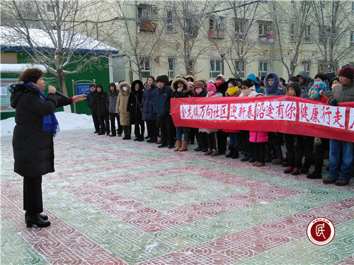 活动开始,万向社区书记兼主任董莉向各位居民说明了举办这次活动的目的是迎接新春佳节的到来,推动全民健身运动的深入开展。接着,社区副主任马淑梅讲解户外徒步活动的路线和注意事项。她说:“今天健步走的路线是从居委会广场开始,绕万向社区外围环路一圈,最后回到广场。大家在行走中,一定要注意安全,相互鼓励,相互照顾,不落下一个人,平平安安地返回到居委会广场。”