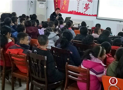 各位同学,大家好!随着主持人的问候响起,台下的同学们立刻安静了下来并有序的坐好了。“今天我们邀请了派出所的警察王新才叔叔给各位同学带了安全知识讲座。” 在讲座开始之前,社区工作人员先安排了返乡大学蒋晓天分享了自己在大学期间的点点滴滴和丰富多彩的大学生活,此次分享引起小学生们对大学生活的无限向往。