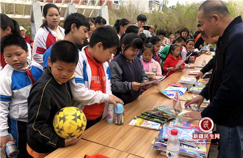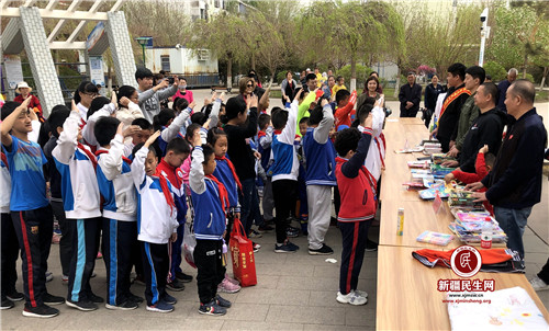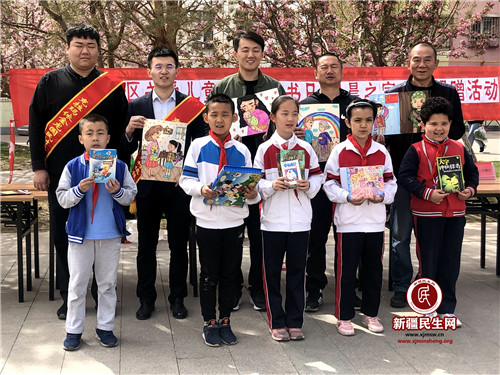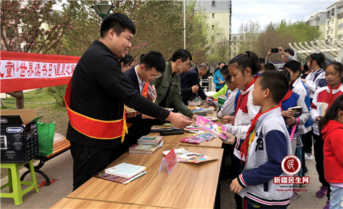 新疆民生网(葛晓华)爱心赠书,情满星光。在“六一”国际儿童节来临之际,5月26日上午,克拉玛依市人民银行驻星光社区访惠聚工作队组织社区、各派驻单位志愿者在星光小区广场开展了捐献赠送爱心图书活动,为辖区孩子们带去了科普、百科、童话、国学知识类、漫画等各类优秀儿童读物共计四百余册,送上了丰富健康的益智、寓教、美德的精神食粮,辖区近70余名青少年参加了活动。