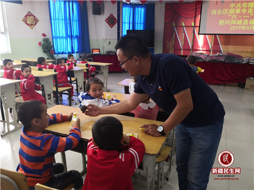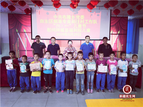 新疆民生网(彭加录)为让福利院儿童度过一个欢乐、祥和的“六•一”儿童节,感受到党和政府的关怀与温暖,5月29日,拜城县人大副主任包乡领导李梅、布隆乡党委书记刘乐、自治区烟草专卖局(公司)驻托万克布隆村、欧吐拉布隆村“访惠聚”工作队总领队木哈拉木·西日甫副总经理、工作队长虞敏如处长等领导来到县福利院,看望慰问了生活在福利院的孩子们,并为他们送去了喜欢的零食、学习文具和生活用品。慰问组一行来到福利院后和院长进行了亲切的交谈,询问了孩子们学习和生活情况。