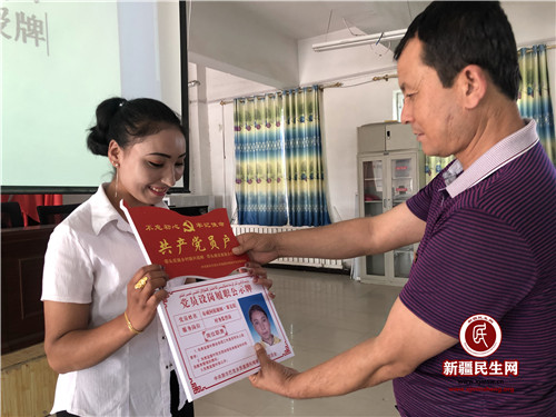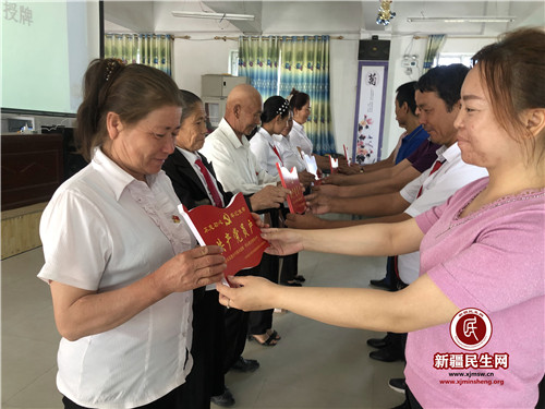 “今天领了这块牌子,我感到很自豪。”老党员库尔班·那依甫激动地说道:“大家路过我家一看,就知道我们家里有党员,这让我有了责任感和使命感。我作为一名老党员,我要坚持自己的入党初心,牢记使命,为带领村民脱贫、振兴乡村做出贡献。”