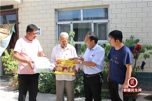 新疆民生网(艾则孜·沙木沙克)6月30日,温宿农村商业银行驻克孜勒镇博然其村“访惠聚”工作队,开展了“七一”慰问老党员活动,向他们送去了蜂蜜、鲜牛奶等慰问品和节日祝福。
