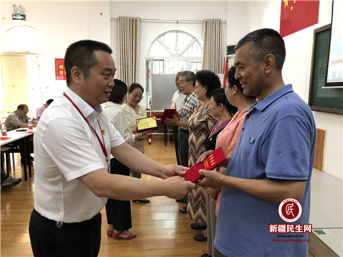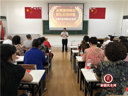 新疆民生网(文晓娇、刘婷)为继承和发扬老一辈无产阶级革命先烈的精神,提高天池社区全体党员的政治思想觉悟,坚定理想信念,7月1日,天池社区党委组织开展了“点亮榜样荣光 献礼红色华诞”主题党日活动,大家在鲜红的党旗前,庄严宣誓,重温入党誓词,追思革命先辈,用行动庆祝中国共产党建党98周年。