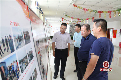 新疆民生网(杨明星)为扎实推进“访惠聚”驻村工作更上新台阶,持续做好“1+2+5”工作任务,彰显派出单位坚强后盾作用,2019年7月4日下午,中国银行新疆区分行党委委员、纪委书记陈定华和分行监察部总经理张燕,在克拉玛依石油分行党委书记、行长张树志的陪同下,莅临东盛社区,看望慰问驻东盛社区“访惠聚”工作队队员,为他们送来了炎炎烈日的消暑慰问品,并就驻村工作进行座谈交流,为他们做好2019年的“访惠聚”驻村工作加油鼓劲。