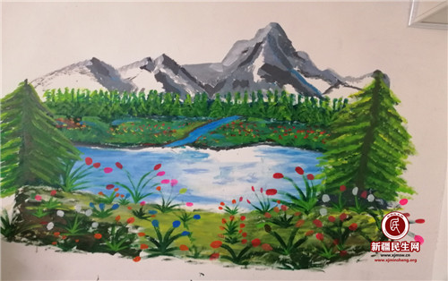 那一副雪山下的绿水青山厨房,没有发现美的眼睛是看不到的。它在厨房的墙壁上,这副画放在厨房有什么重要的意义吗?村民艾木热拉·阿比提说,厨房是每个人时常进出的地方,祖国的天山冰雪养育了我们,所以我们要心怀感恩之心,感恩伟大的党和祖国,顿时印证习总书记所说的绿水青山就是金山银山,冰天雪地也是金山银山。雪山下雪松挺拔,花草芬芳,蓝蓝的湖边多了一丝生机。