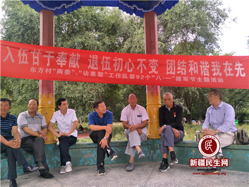 新疆民生网(王朝辉) 在第92个八一建军节来临之际,东方村"两委"、“访惠聚”工作队组织老军人、退役军人及现役军人家属开展“入伍我甘于奉献 退伍我初心不忘 团结和谐我在先”庆八一主题活动。