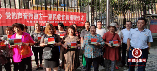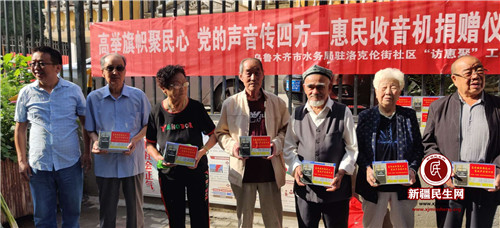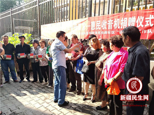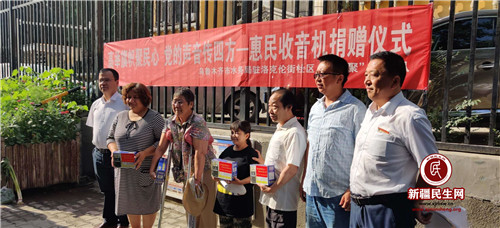 新疆民生网(史先平)2019年7月29日,经济技术开发区(头屯河区)洛克伦街社区门前,刚参加完升旗仪式的各族居民又见证了一场“高举旗帜聚民心,党的声音传四方”惠民收音机爱心捐赠仪式。